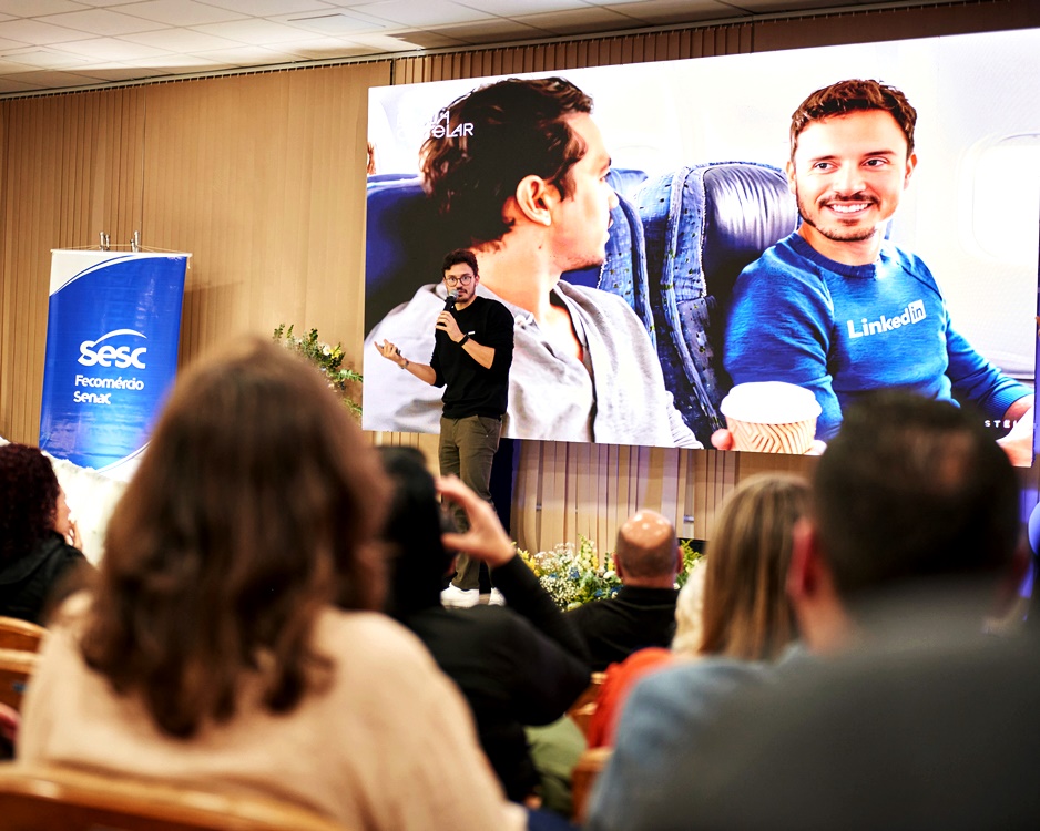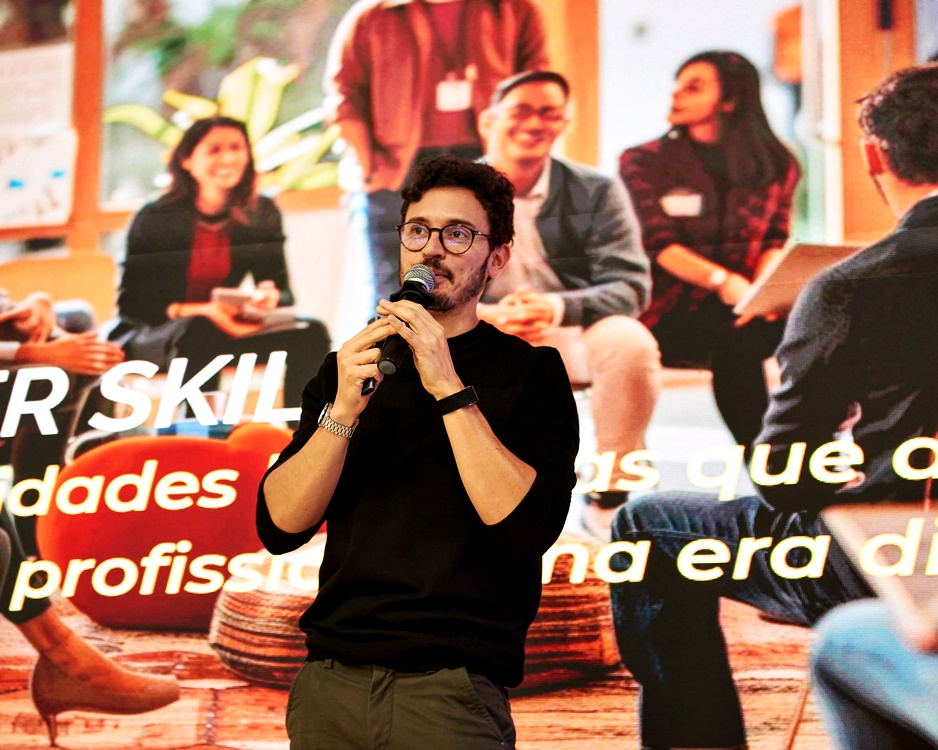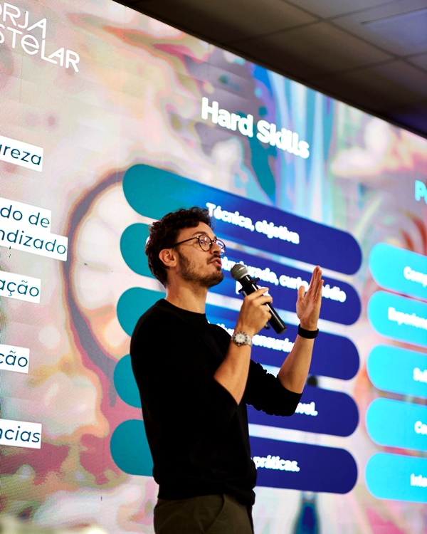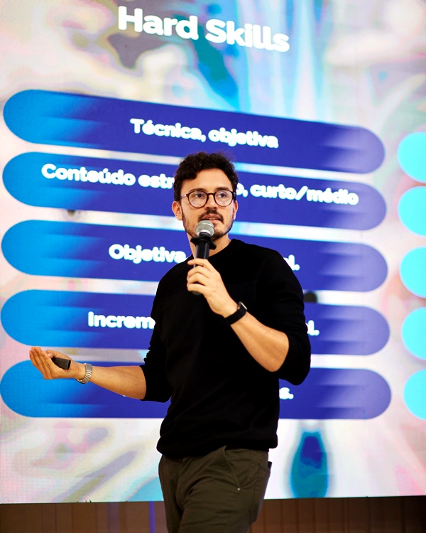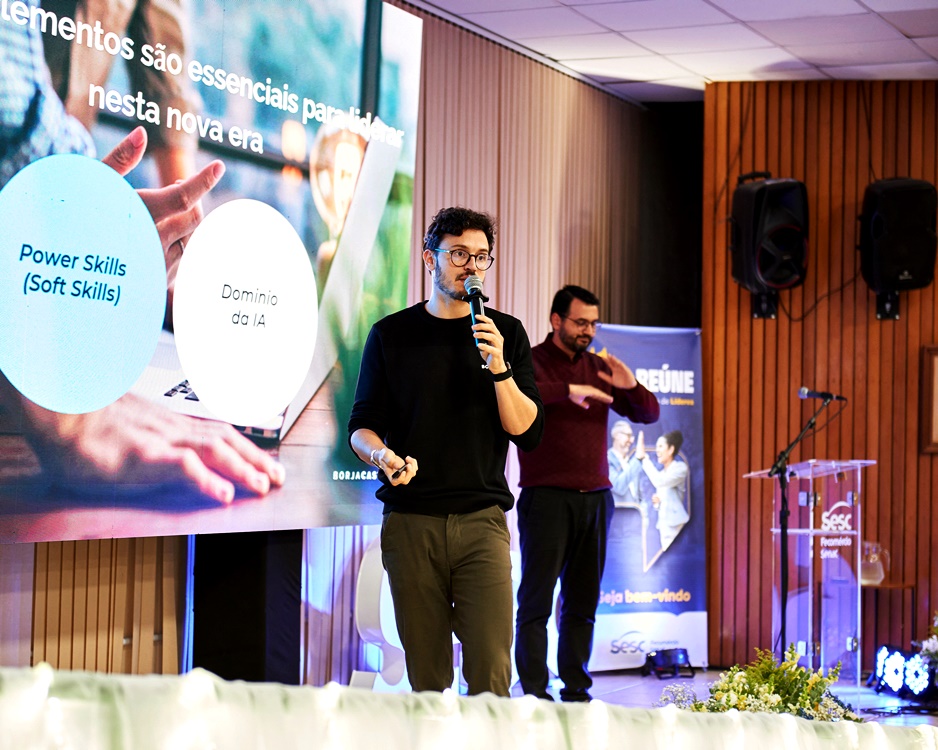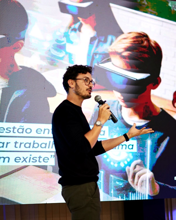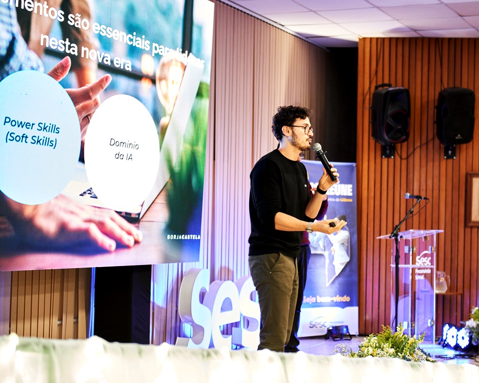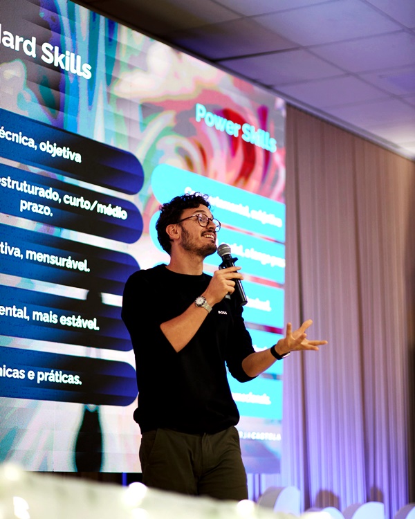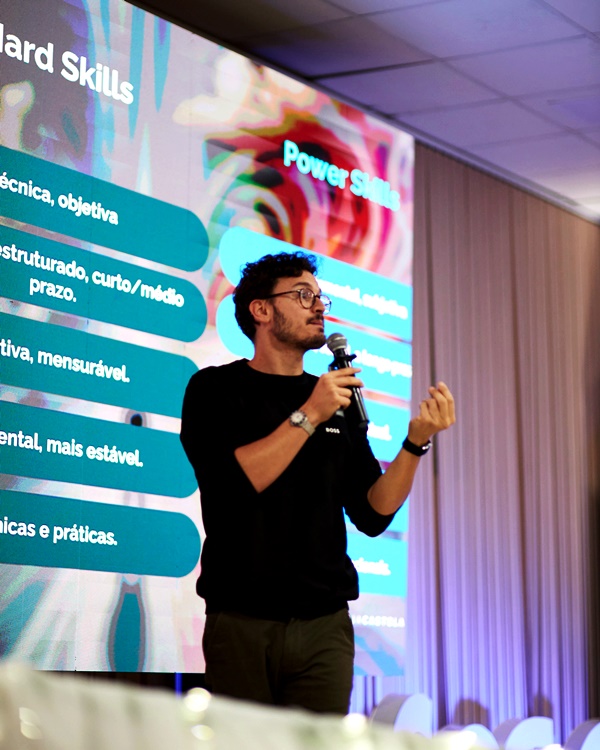 Durante a palestra, ele destacou a importância das habilidades humanas em um cenário cada vez mais dominado pela tecnologia.