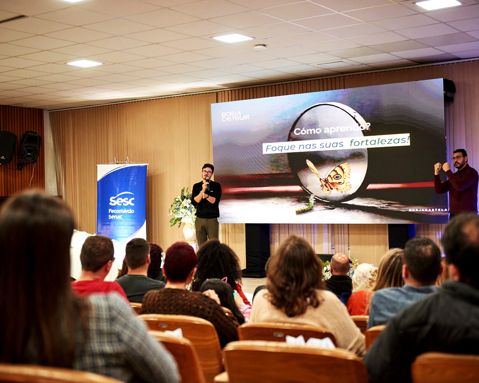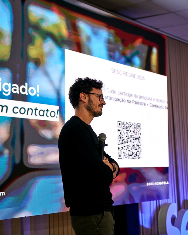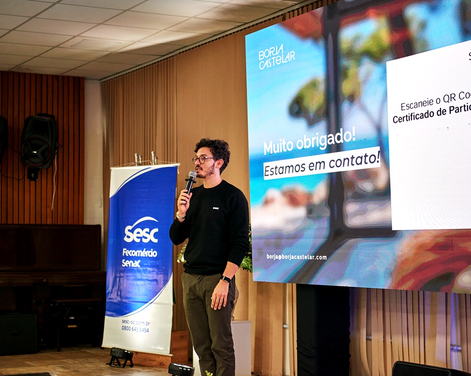 O palestrante também compartilhou parte de sua trajetória pessoal. Natural de Madrid, Borja já morou na França, Inglaterra, Irlanda e, há oito anos, vive no Brasil.