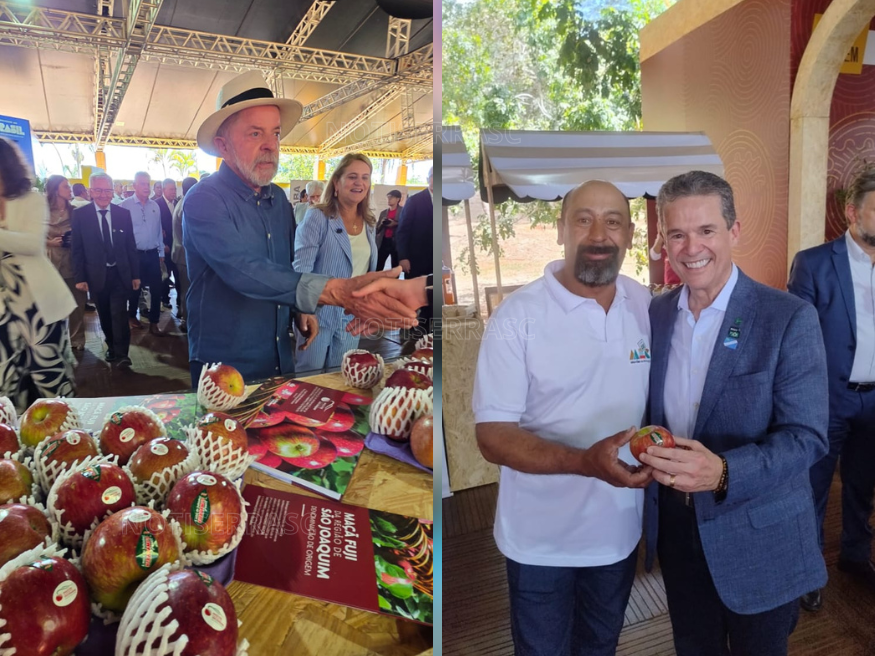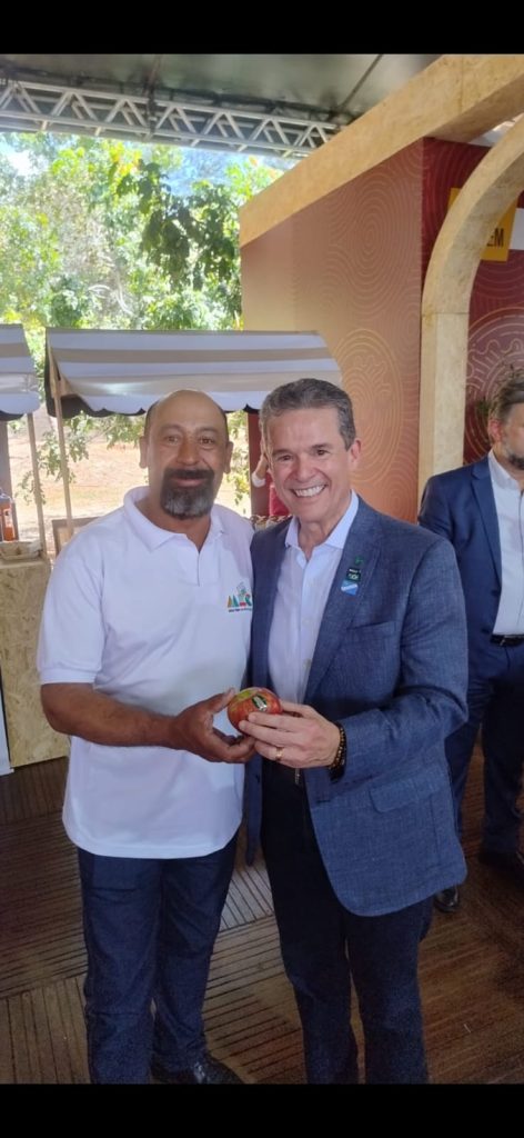 Durante a programação, o diretor da câmara técnica da Amap, Ronaldo de Arruda Matos, aproveitou a oportunidade para dialogar com o ministro da Agricultura, André de Paula. Na ocasião, foi apresentada a preocupação do setor produtivo com os prejuízos causados por eventos climáticos, especialmente o granizo, que afeta diretamente a produção de maçãs na região.