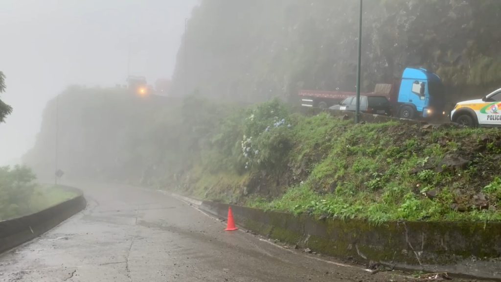 A Polícia Militar Rodoviária do Posto de Bom Jardim da Serra informou que a SC-390 operou em meia pista na manhã desta terça-feira, após uma queda de barreira registrada no trecho da Serra do Rio do Rastro. Equipes foram mobilizadas imediatamente para realizar a remoção das pedras e garantir a segurança dos motoristas.