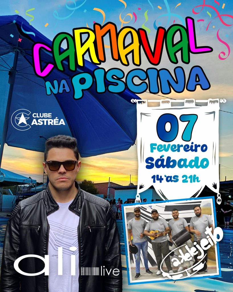 Sol, piscina, música e animação vão marcar a tarde de Carnaval no Clube Astréa. No dia 7 de fevereiro, a Sede de Campo do Clube recebe uma programação especial que promete reunir associados e convidados em um clima de festa, descontração e verão.