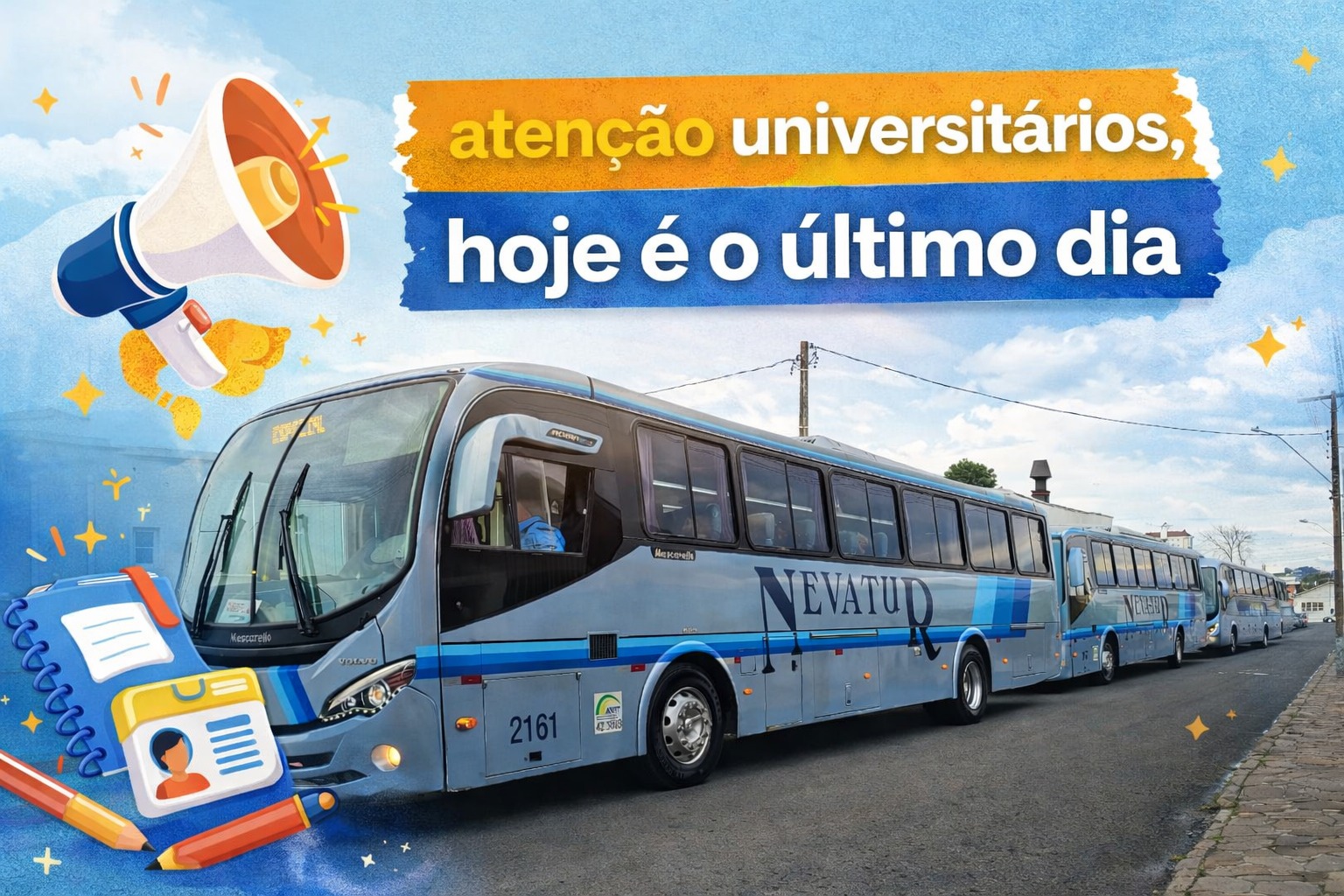 A Prefeitura de São Joaquim reforça o alerta aos estudantes universitários: esta quinta-feira (15) é o último dia para a entrega da documentação complementar exigida para a classificação e concessão do benefício do Transporte Universitário Gratuito.
