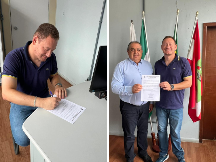 Concluído o ato solene, foi lavrado o Termo de Posse, assinado pelo presidente da Câmara Municipal e pelas demais autoridades presentes, formalizando a posse do novo vereador.