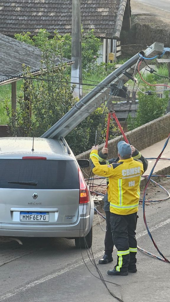 Durante a avaliação inicial, os bombeiros verificaram que não havia vítimas no interior do automóvel, dispensando atendimento pré-hospitalar. O impacto, no entanto, causou danos materiais e representou risco potencial à rede elétrica.
